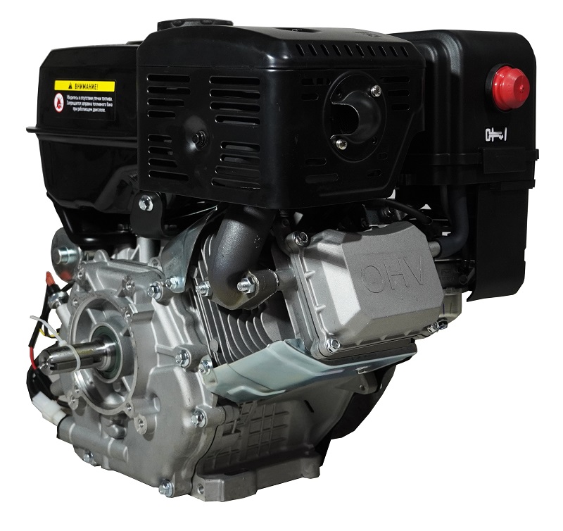 Одноцилиндровый двигатель/ объем 458 куб.см/ 20 л.с/ горизонтальный вал 25 мм/ ручной и электрический запуск/ катушка освещения 18А