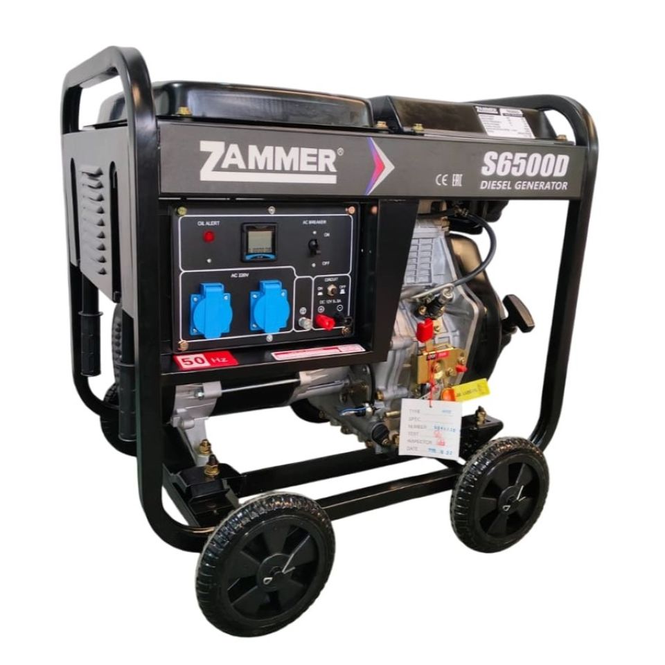 Евророзетки: 2*16А (220 В), мультифункциональный дисплей (счетчик моточасов, вольтметр, частотомер), автомат защиты, регулятор напряжения (AVR), датчик уровня масла, колеса 4х8", складные ручки.