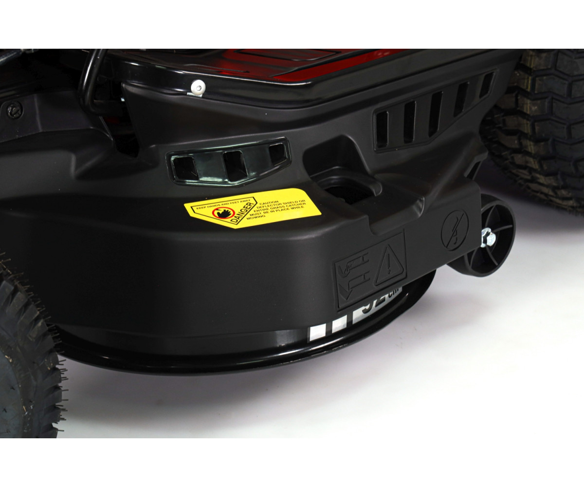 - Плавающая режущая дека имеет 2 антискальпирующих колеса, предотвращающие повреждение дерна.